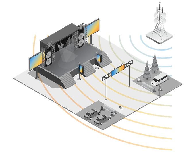 Live events require precisely timed content across light-emitting diode (LED) walls, concourse displays, and wayfinding screens in stadiums, arenas, festivals, trade shows, convention centers, and other high-traffic environments. Creative updates, safety messages, and real-time programming must reach every screen instantly. When thousands of displays rely on one-to-one connectivity, congestion and delays can disrupt the attendee experience.